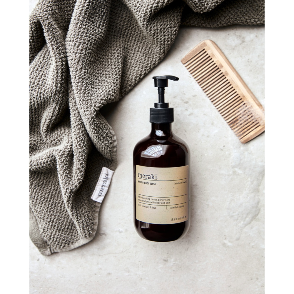 Færre produkter og en enklere rutine får du med denne certificerede økologiske hår og body wash fra danske Meraki,