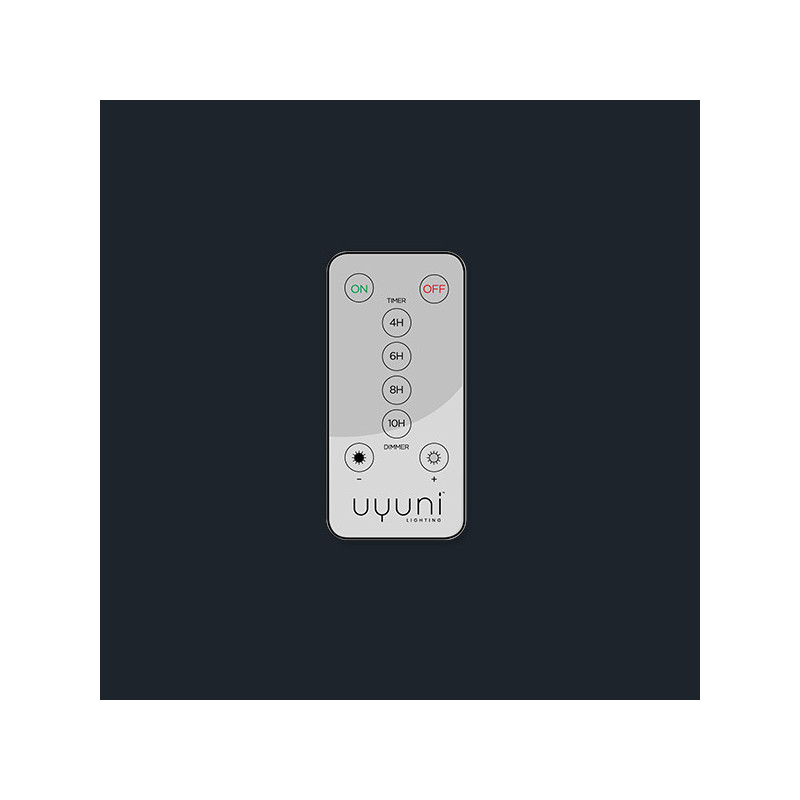 Du kan bruge Uyuni fjerbetjeningen til de fine Uyuni LED kronelys. Med Uyuni fjernbetjening kan du stille tiden til 4, 6, 8 og 10 timers brændetid lige som du kan skrue lidt ned for lysstyrken og selvfølgelig tænde og slukke for dine lys.