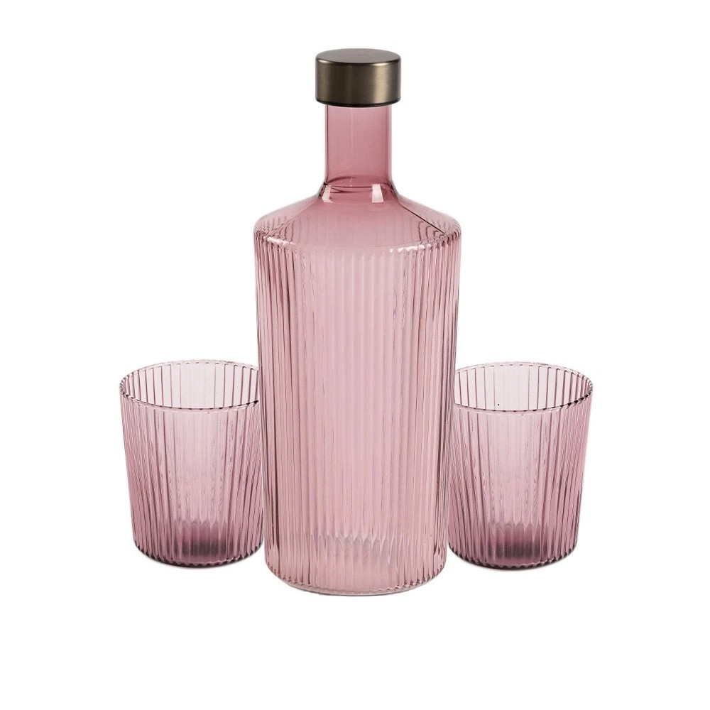 Paveau mundblæst vandflaske i glas med låg. Lyserød.
