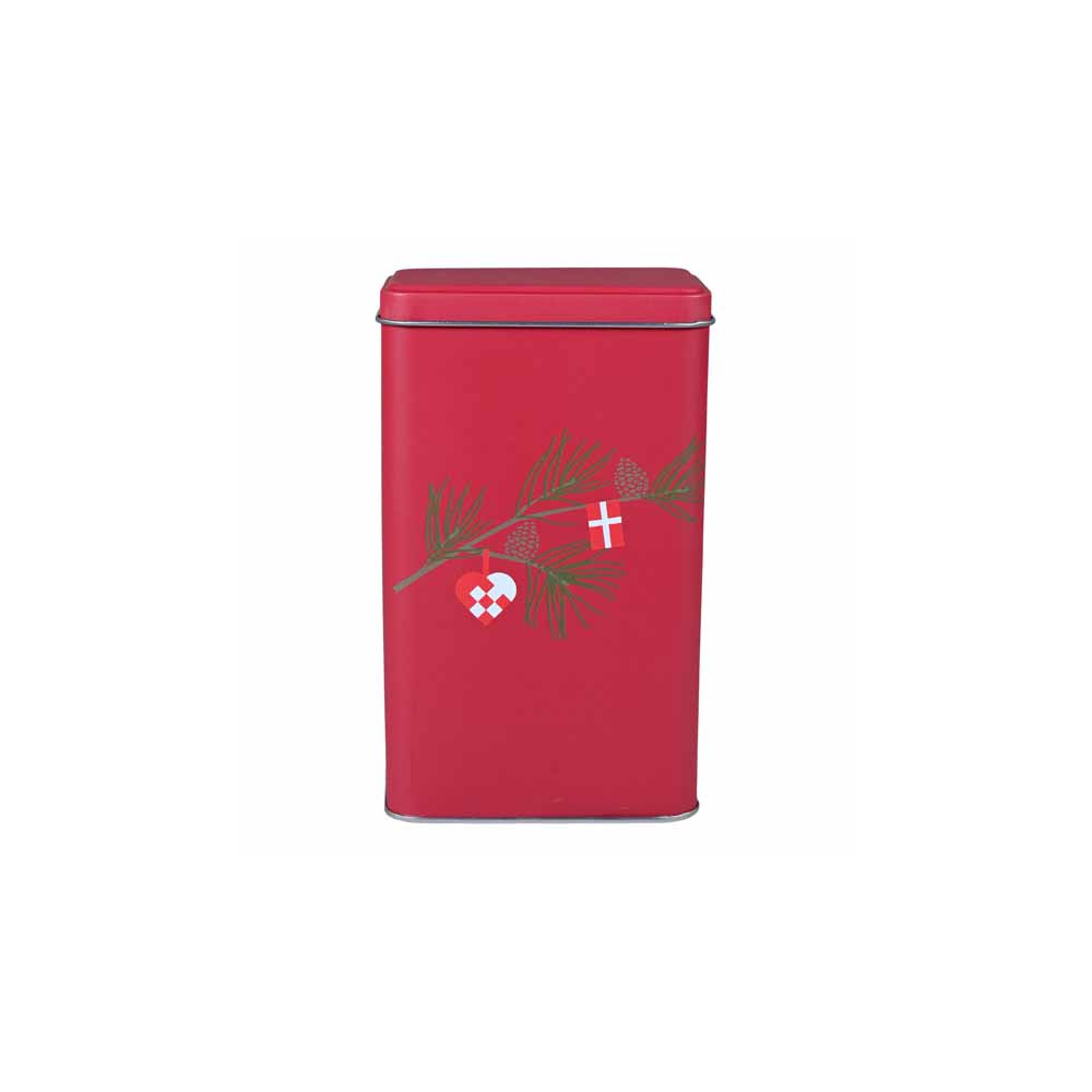 Julemandens autocamper kagedåse med ski på taget er klar til at blive fyldt op og tage med på campingturen.