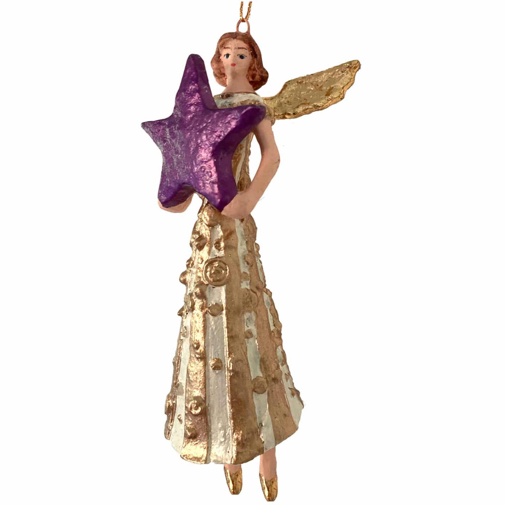 Den fine engel som holde en stjerne er sød at hænge på juletræet eller på en gren.