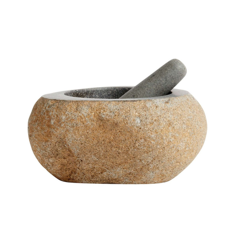 En stor, solid, kraftig og god morter i sten som kan bruges til det hele - både til de friske krydderurter og til alle de krydderierne som har brug for at blive stødt i en morter.