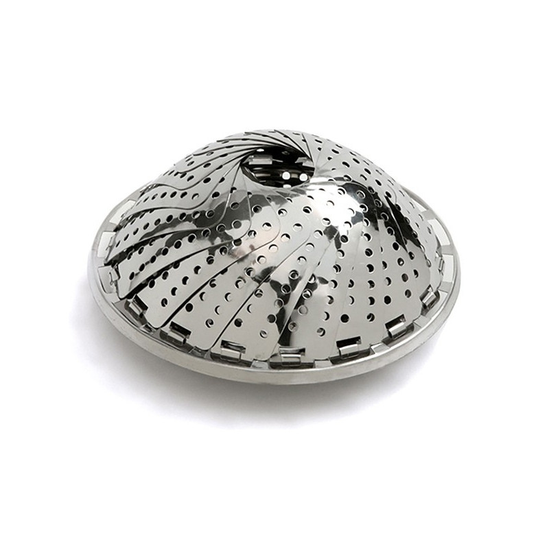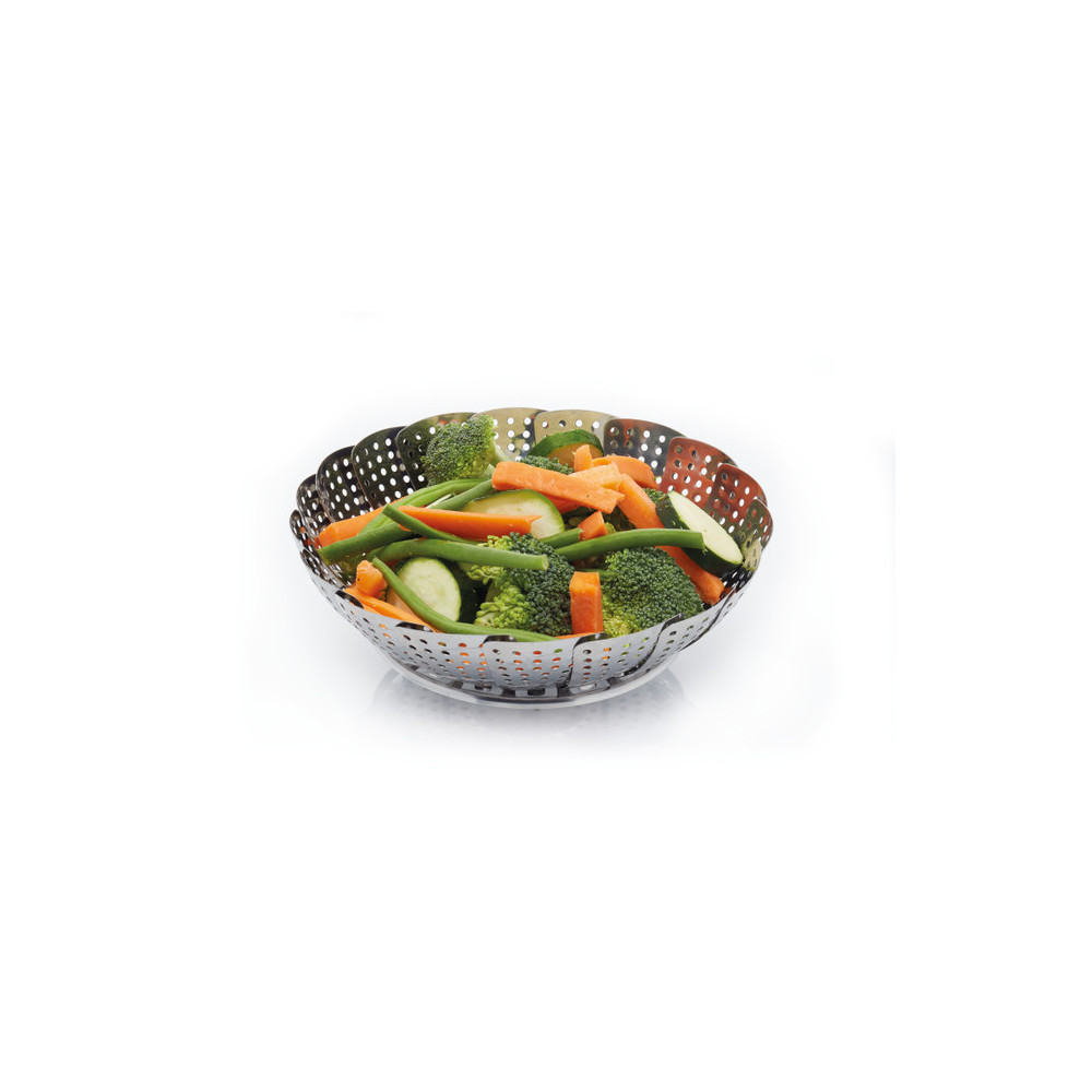 - Foldbar grøntsagsdamper i stål som sættes ned i en gryde.