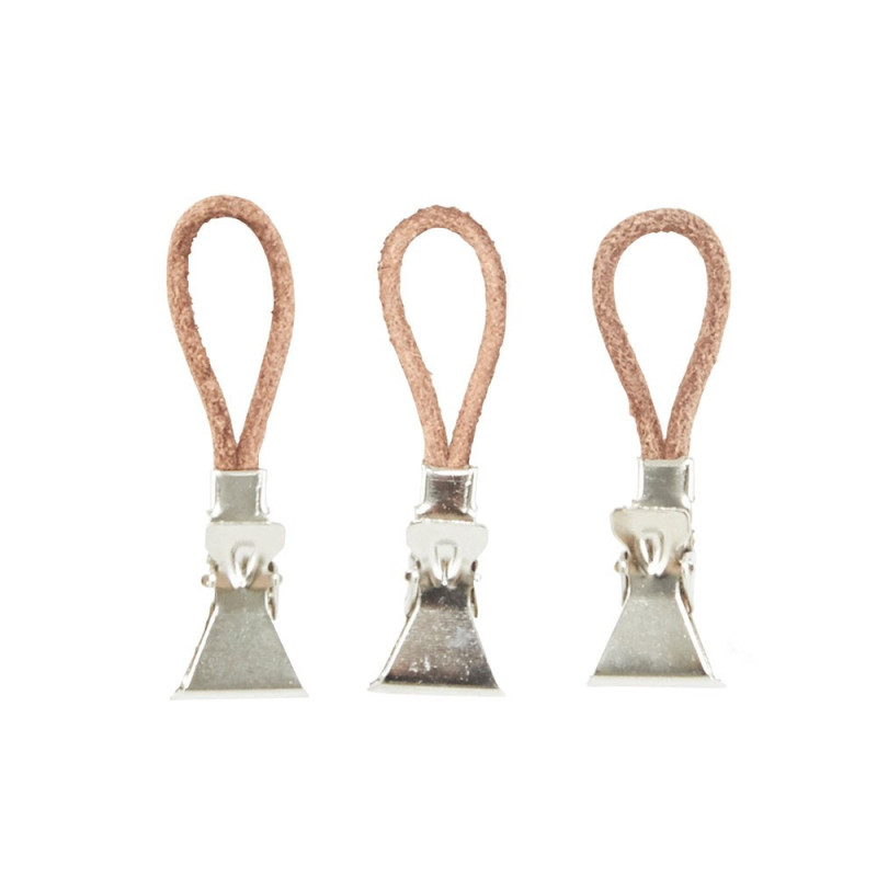 I denne pakke får du 10 stk. Meraki håndklædeclips i stilfuld skind og stål. En eksklusiv håndklæde strop som klæder både dit håndklæde og dit badeværelse.