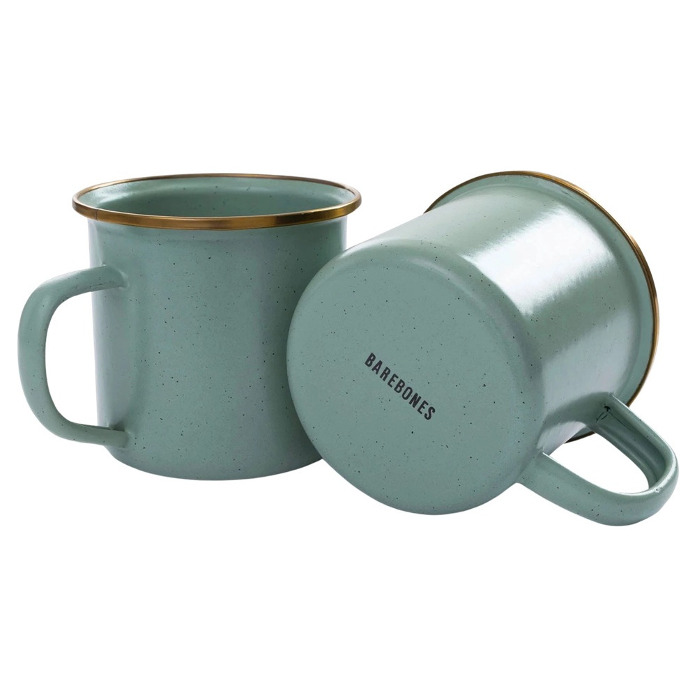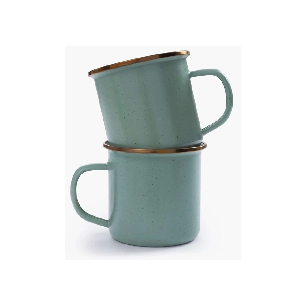 De tofarvede emalje krus er lavet med en solid stålkerne og en rustbestandig emalje som giver en robust emalje krus som både kan tåle at blive brugt udendørs og inde. De fine emalje krus er helt oplagte som kaffekrus på en picnic tur.